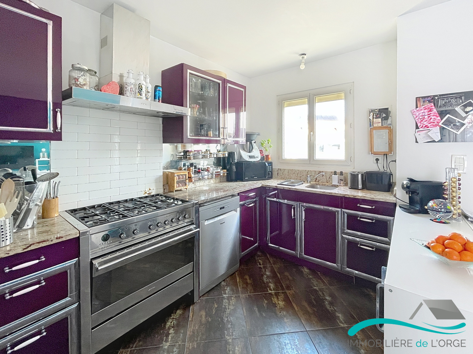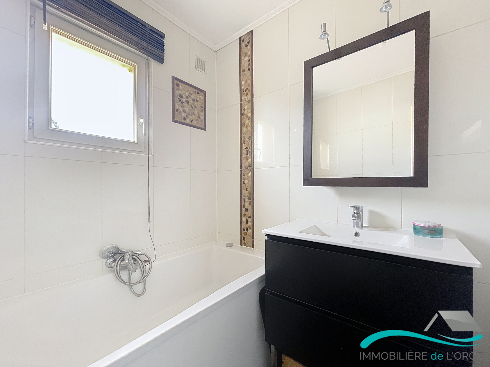 Séjour lumineux avec cuisine américaine, et accès terrasse par une baie coulissante. Salle de bains, dotée d'une fenêtre, avec WC et branchement machine à laverÉtage :