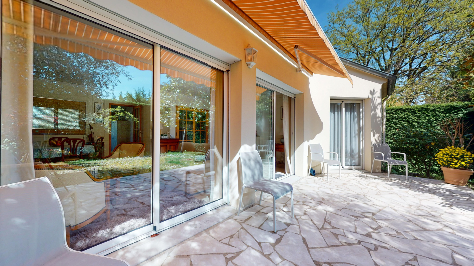 - double séjour en L avec une belle cheminée maçonnée,